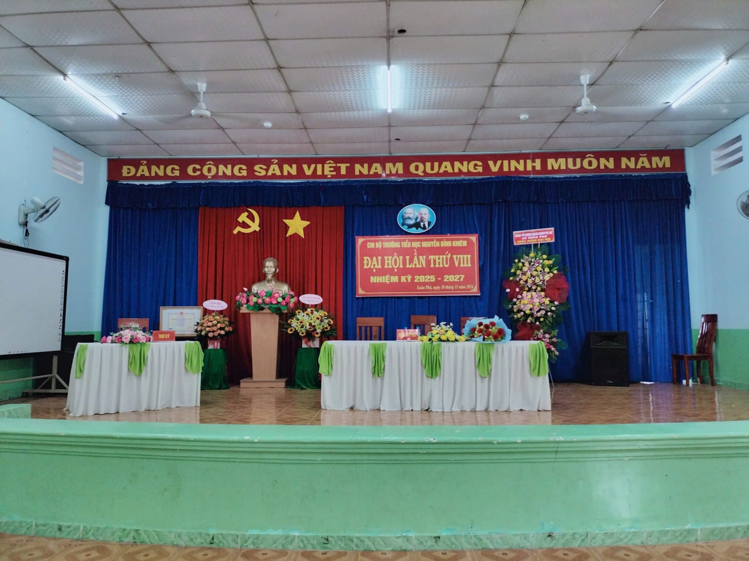 Đại hội vinh dự được đón tiếp các vị đại biểu đại diện cho Đảng ủy, chính quyền địa phương, cùng toàn thể đảng viên Chi bộ Trường Tiểu học Nguyễn Bỉnh Khiêm.