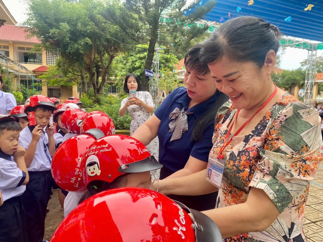 Những chiếc mũ bảo hiểm không chỉ là vật dụng bảo vệ các em trên những nẻo đường mà còn là món quà ý nghĩa, thể hiện sự quan tâm của nhà trường và cộng đồng đến sự an toàn của các em.